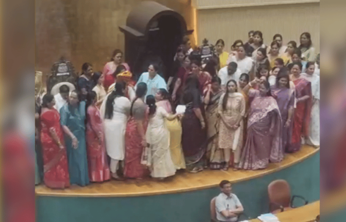 परिवहन समिती सदस्यांच्या निवडीवरून नवी मुंबई महापालिकेच्या आज झालेल्या पहिल्या महासभेत प्रचंड गोंधळ उडाला. ही निवड महापौर सुजाता पाटील यांनी पक्षीय बलाबलनुसार न घेता निवडणूक पद्धतीने घेऊन शिंदे गटाला कात्रजचा घाट दाखवला. एकही सदस्य परिवहन समितीवर न गेल्यामुळे शिंदे गटाच्या नगरसेवकांनी सभागृहात जोरदार घोषणाबाजी करून महापौरांना घेराव घातला. त्यामुळे महापौरांना महासभेचे कामकाज सुमारे अर्धा तासासाठी तहकूब करावे लागले. परिवहन समितीवर सर्व १२ सदस्य भाजपचे निवडून आले आहेत.
