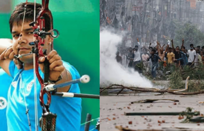 आशियाई तिरंदाजी अजिंक्यपद स्पर्धा गाजवून मायदेशी परतण्यापूर्वी 11 हिंदुस्थानी खेळाडू सोमवारी तब्बल दहा तास बांगलादेशात अडकले होते. त्यांच्या ढाक्यातून सुटणाऱ्या विमानाला वारंवार उशीर झाल्याने अखेर ते रद्द करण्यात आले. या काळात त्यांना कोणतीही सुरक्षा न देता ढाक्याच्या हिंसाग्रस्त भागातून एका स्थानिक बसने हलविण्यात आले आणि नंतर अतिशय खराब अवस्थेतील एका धर्मशाळेत ठेवण्यात आले. त्यामुळे खेळाडूंना मोठा मनस्ताप सहन करावा लागला.