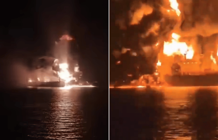 व्हायरल व्हिडीओंमध्ये ‘झेफिरोस’ आणि ‘सेफसी विष्णू’ या दोन जहाजांवर मोठे स्फोट होऊन आगीचे लोळ उठताना दिसत आहेत. यापैकी ‘सेफसी विष्णू’ हे जहाज एका अमेरिकन कंपनीच्या मालकीचे आहे. या जहाजांमध्ये सुमारे 4 लाख बॅरल इराकी कच्चे तेल होते. या भीषण आगीमुळे समुद्रात तेल गळती झाल्याची भीतीही व्यक्त केली जात आहे.