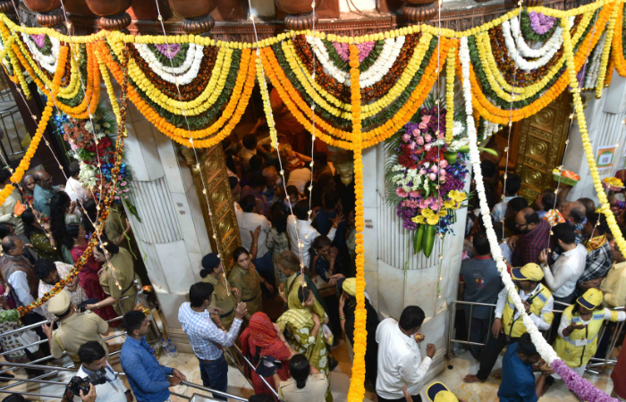 अंगारकी संकष्टी चतुर्थीनिमित्त मुंबईतील प्रभादेवीमधील सिद्धिविनायक मंदिरात भाविकांची सकाळपासून रीघ लागली होती.