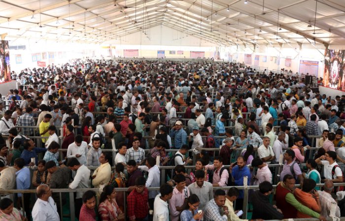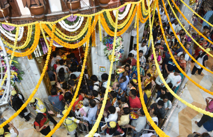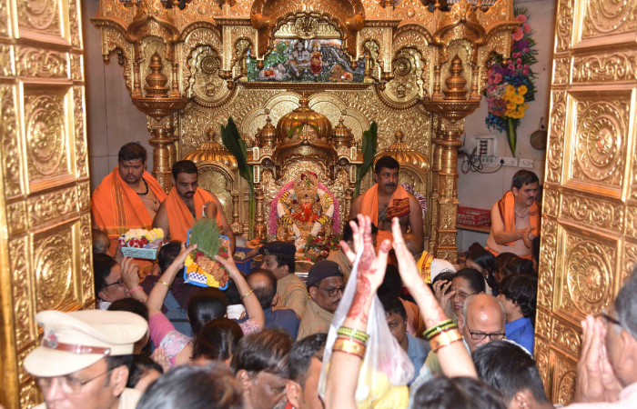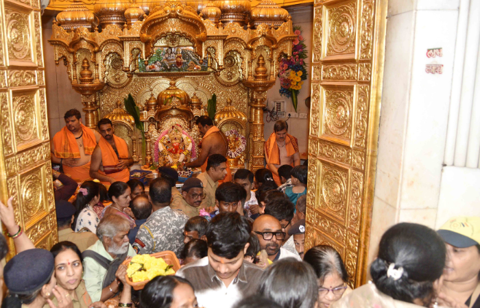 अंगारकी संकष्टी चतुर्थीनिमित्त मुंबईतील प्रभादेवीमधील सिद्धिविनायक मंदिरात भाविकांची सकाळपासून रीघ लागली होती.