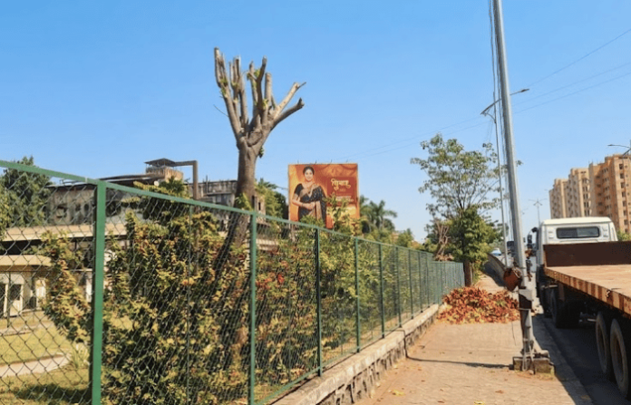 ऑक्सिपार्कमधील झाडांची बेकायदा कत्तल झाल्याची माहिती मिळताच पनवेल महापालिकेच्या उद्यान विभागातील अधिकाऱ्यांनी घटनास्थळी धाव घेतली. अधीक्षक संदीप पवार, विवेक दळे, प्रवीण भोईर आणि नितीन बाबुळे यांनी तक्रारदार रोहित आटवणे व साक्षीदार तुषार कापरे यांच्या उपस्थितीत या घटनेचा पंचनामा केला. भररस्त्यात आणि वर्दळीच्या ठिकाणी असलेल्या बागेतील झाडांची अशा प्रकारे छाटणी झाल्याने पर्यावरणप्रेमींकडून तीव्र संताप व्यक्त केला जात आहे. आता याप्रकरणी दोषी असलेल्या होर्डिंगमालकावर महापालिका काय कठोर कारवाई करणार, याकडे सर्वांचे लक्ष लागले आहे.