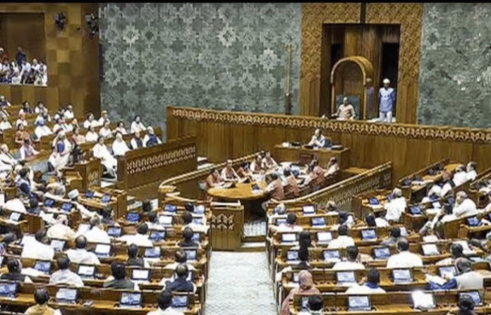 लोकसभेचे कामकाज दुपारी 12 वाजता सुरू होताच गदारोळ सुरूच राहिला, त्यामुळे पुन्हा कामकाज 2 वाजेपर्यंत स्थगित करण्यात आले. लोकसभेत विरोधकांच्या गदारोळात, संध्या राय यांनी अध्यक्षांकडून सभागृहाचे कामकाज सुरू करण्याची विनंती केली. संसदीय कामकाज मंत्री किरेन रिजिजू यांनीही सभागृहाचे कामकाज सुरू करण्याचे आवाहन केले. मात्र, तरीही गदारोळ सुरुच राहिल्याने कामकाज दुपारी २ वाजेपर्यंत तहकूब करण्यात आले आहे. दुपारी १२ वाजता लोकसभेचे कामकाज पुन्हा सुरू झाल्यावर, विरोधी सदस्य वेलमध्ये उतरले. त्यावेळी संसदीय कामकाज मंत्री किरेन रिजिजू म्हणाले की, सभागृहात विधेयक मांडण्याची वेळ आहे. त्या काळात तुम्हाला जे मुद्दे उपस्थित करायचे आहेत ते उपस्थित करा. सर्वांनी शिस्तीचे पालन करावे, असे आवाहन त्यांनी केले.