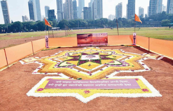 शिवसेनाप्रमुखांना आदरांजली वाहण्यासाठी छत्रपती शिवाजी महाराज पार्क मैदानात भव्य रांगोळी रेखाटण्यात आली होती. ‘जरी माझ्या पार्थिवाला शिवतीर्थावर अग्नी दिला, तरी तुम्ही या ज्वालेची मशाल अशीच धगधगती ठेवा’, असा संदेश रांगोळीतून देण्यात आला.