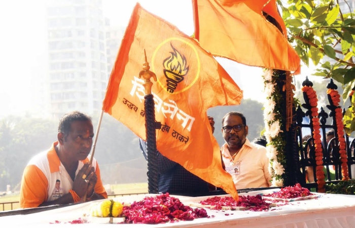 अनेक शिवसैनिक भगवा हाती घेऊन नतमस्तक झाले.