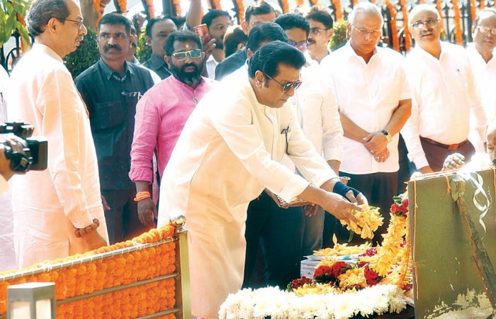मनसे अध्यक्ष राज ठाकरे यांनी शक्तिस्थळावर श्रद्धांजली वाहिली.