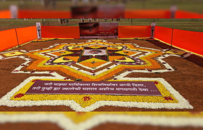 तसेच मैदानात भव्य रांगोळी साकारत बाळासाहेबांना अनोख्या पद्धतीने अभिवादन करण्यात आले.