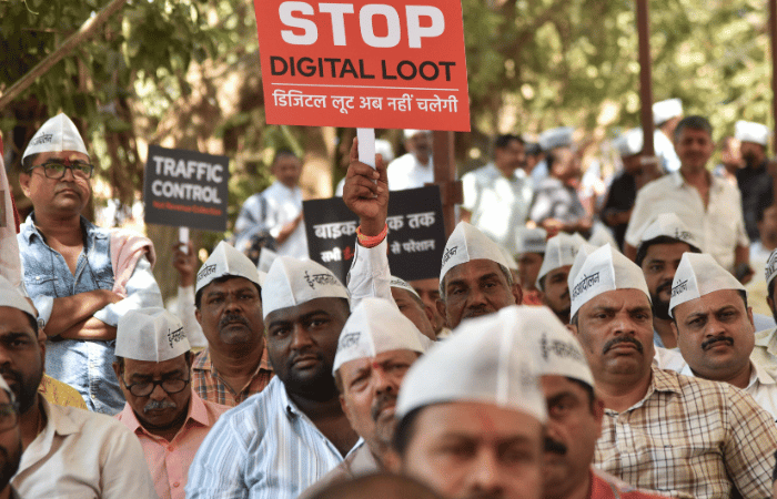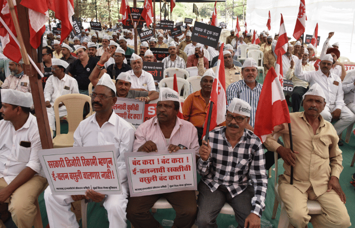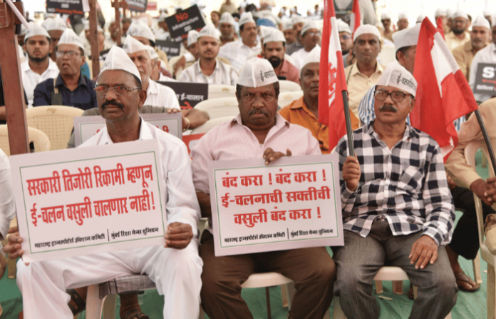 वाहन चालकांना चुकीच्या पद्धतीचे ई-चलान आकारले जात असल्याचा आरोप करत महाराष्ट्र ट्रान्सपोर्ट ॲक्शन कमिटीने राज्यव्यापी आंदोलन.