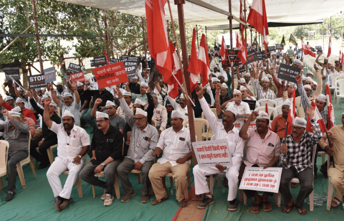 ज्यातील हजारो वाहतूकदार मुंबईतील आझाद मैदानावर आंदोलन करत आहेत.