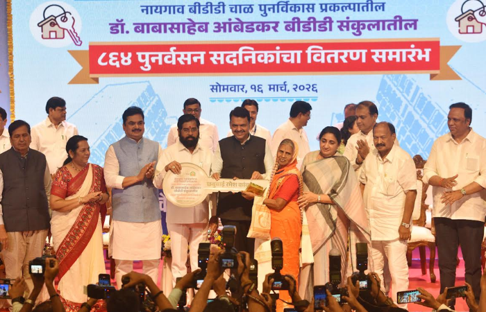 गुढीपाडव्याच्या मुहूर्तावर नायगाव बीडीडी चाळ पुनर्विकास प्रकल्पाच्या पहिल्या टप्प्यातील 864 रहिवाशांची स्वप्नपूर्ती. आज (16 मार्च 2026) सकाळी 10 वाजता नरीमन पॉइंट येथील यशवंतराव चव्हाण सेंटर येथे मुख्यमंत्री देवेंद्र फडणवीस यांच्या हस्ते चाव्यांचे वाटप करण्यात आले.