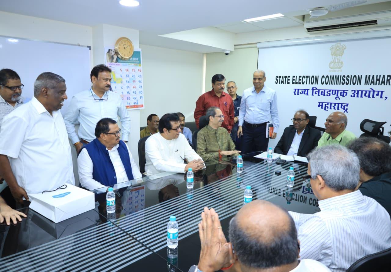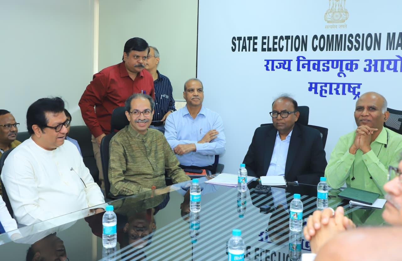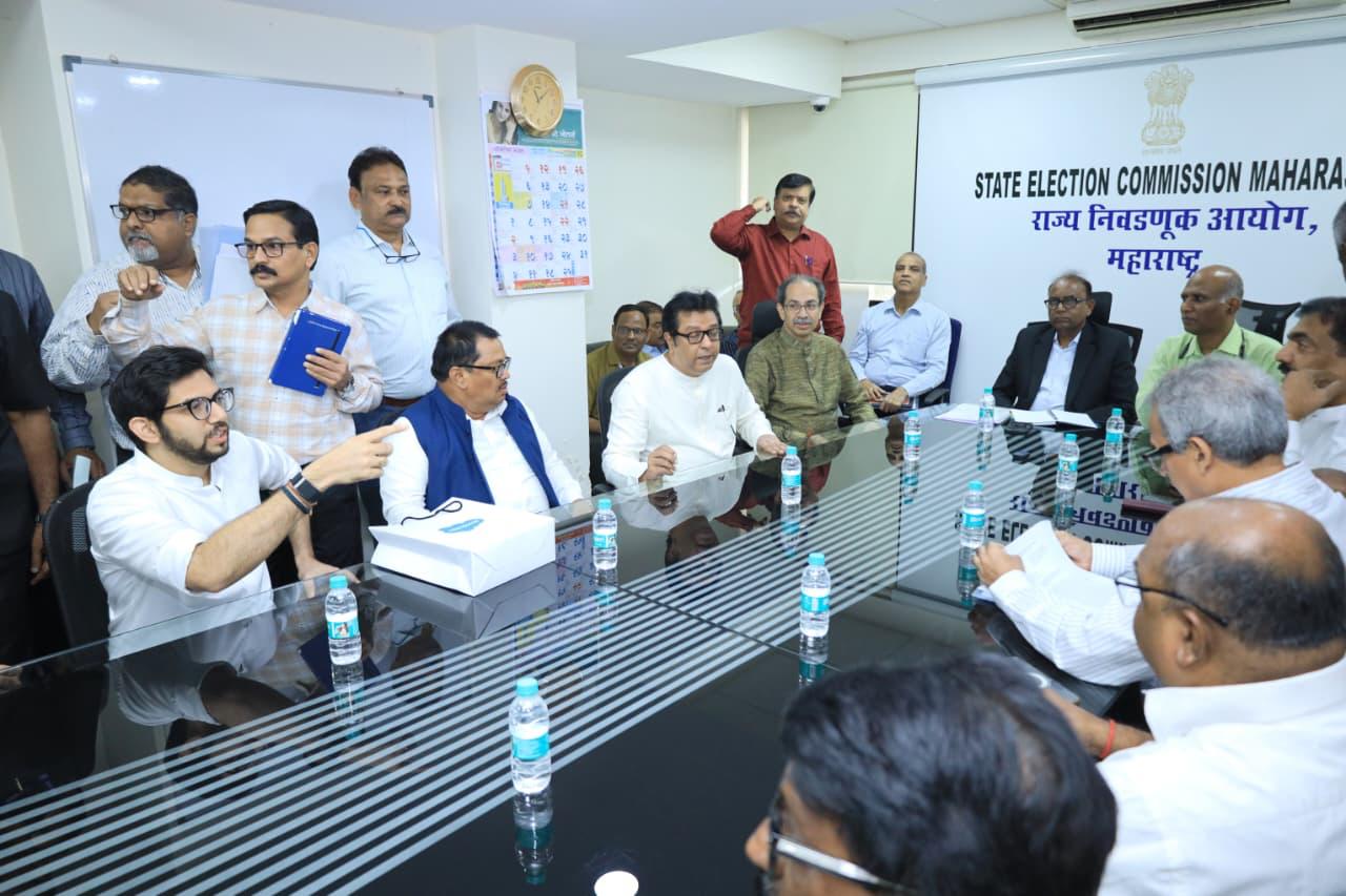महाविकास आघाडी आणि सहयोगी पक्षांच्या शिष्टमंडळाने आज पुन्हा मुख्य निवडणूक अधिकारी एस. चोक्कलिंगम आणि राज्याचे निवडणूक आयुक्त दिनेश वाघमारे यांची मंत्रालय येथील कार्यालयात भेट घेतली. यावेळी महाराष्ट्र राज्यातील निवडणूक याद्या आणि प्रक्रीयेत असलेल्या घोळाबाबत आक्षेप मांडले. या शिष्टमंडळात शिवसेना (उद्धव बाळासाहेब ठाकरे) पक्षप्रमुख उद्धव ठाकरे, मनसेप्रमुख राज ठाकरे, काँग्रेस विधिमंडळ नेते विजय वडेट्टीवार, युवासेनाप्रमुख, शिवसेना नेते आमदार आदित्य ठाकरे, मनसे नेते अमित ठाकरे, काँग्रेस नेते बाळासाहेब थोरात, शेकापचे जयंत पाटील, शिवसेना नेते खासदार अरविंद सावंत, शिवसेना नेते सचिव खासदार अनिल देसाई, शिवसेना नेते आमदार ॲड. अनिल परब, राष्ट्रवादीचे जयंत पाटील, राष्ट्रवादी काँग्रेस शरदचंद्र पवार पक्षाचे आमदार जितेंद्र आव्हाड, मनसे नेते बाळा नांदगावकर तसेच महाविकास आघाडीतील सहयोगी पक्षांचे इतर नेते, पदाधिकारी उपस्थित होते.