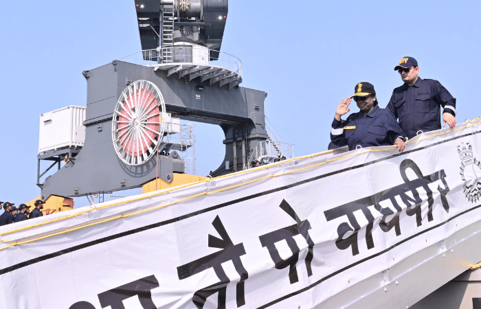 राष्ट्रपती द्रौपदी मुर्मू यांनी INS वाघशीरमधून प्रवास केला आहे. असं करणाऱ्या त्या दुसऱ्या राष्ट्रपती आहेत. याआधी माजी राष्ट्रपती अब्दुल कलाम आझाद यांनी INS वाघशीरमधून प्रवास केला होता.
