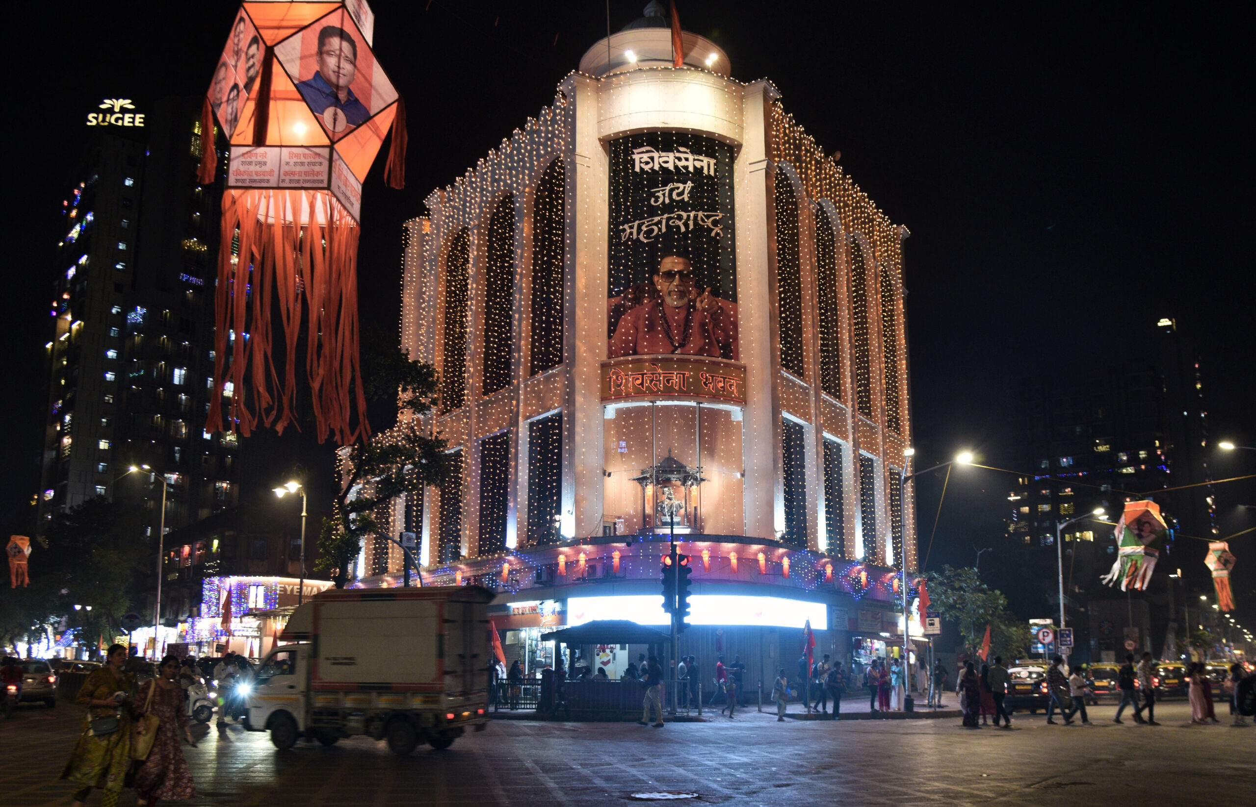 दिवाळीनिमित्त शिवसेना भवनाला आकर्षक रोषणाई करण्यात आली असून तमाम शिवसैनिकांसाठी मंदिरासमान असलेली ही वास्तू लख्ख प्रकाशात उजळून निघाली आहे.