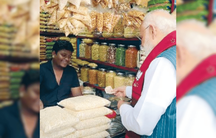 ‘डिजिटल इंडिया’चा पुरस्कार करणाऱ्या आणि लोकांना डिजिटल होण्याचे आवाहन करणाऱ्या पंतप्रधान नरेंद्र मोदी यांनी आज सर्वांना आश्चर्याचा धक्का दिला. पश्चिम बंगालच्या दौऱ्यावर असलेल्या मोदींनी तेथील एका दुकानदाराला चक्क रोख पैसे दिले. सोशल मीडियात याची जोरदार चर्चा रंगली आहे.