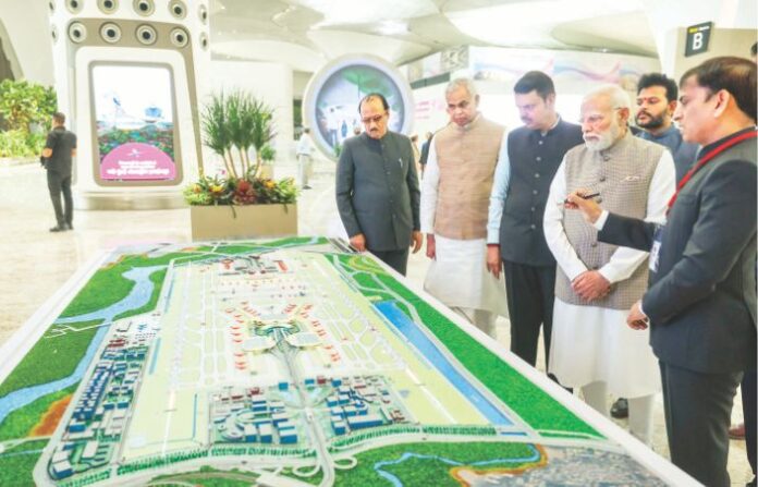 नवी मुंबई आंतरराष्ट्रीय विमानतळाचे उद्घाटन आज पंतप्रधान नरेंद्र मोदी यांच्या हस्ते झाले. पंतप्रधानांच्या विमानाने दुपारी तीनच्या सुमारास विमानतळावर लँडिंग केले. सायंकाळी 4 वाजून 5 मिनिटांनी त्यांनी विमानतळासह मुंबई मेट्रो मार्गिका क्रमांक 3 चा अंतिम टप्पा या प्रकल्पाचे लोकार्पण केले. विमानतळाचे उद्घाटन झाले असले तरी प्रत्यक्षात प्रवासी आणि मालवाहतूक विमानसेवा ही येत्या डिसेंबरपासून सुरू होणार आहे. मोदी आज या विमानतळाला लोकनेते दि. बा. पाटील यांचे नाव जाहीर करतील अशी अपेक्षा होती; परंतु वीस मिनिटांच्या भाषणात त्यांनी दि. बा. पाटील यांचा ओझरता उल्लेख केला, पण त्यांच्या नावाची कोणतीही घोषणा केली नाही.