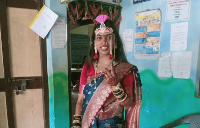 संगमेश्वर जिल्हा परिषद व पंचायत समितीच्या निवडणुकीच्या पार्श्वभूमीवर परचुरी गावात लोकशाहीप्रती जागरूकतेचे प्रेरणादायी उदाहरण पाहायला मिळाले. परचुरी येथील प्रियंका भार्गव वेल्ये हिचा विवाह रुपेश खाडे यांच्याशी संपन्न झाला. विवाह सोहळा झाल्यानंतर नववधू प्रियंका वेल्ये हिने थेट मतदान केंद्र गाठत आपला मतदानाचा हक्क बजावला.