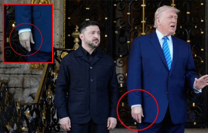 या भेटीदरम्यान डोनाल्ड ट्रम्प यांच्या उजव्या हाताच्या फोटोंनी सोशल मीडियावर सर्वांचे लक्ष वेधून घेतले. ट्रम्प यांच्या उजव्या हातावर मोठ्या प्रमाणात ‘मेकअप’ (कन्सीलर) लावल्याचे स्पष्टपणे दिसून येत होते. ज्यामुळे त्यांच्या प्रकृतीबाबत पुन्हा एकदा वेगवेगळ्या चर्चा सुरू झाल्या आहेत. राष्ट्राध्यक्षांच्या हातावरील ही खूण लपवण्यासाठी मेकअपचा वापर केल्याचा दावा नेटकऱ्यांनी केला आहे. यापूर्वीही ट्रम्प यांच्या हातावर अशाच प्रकारच्या पट्ट्या आणि खुणा दिसल्या होत्या, ज्यामुळे त्यांच्या आरोग्याविषयी चिंता व्यक्त केली जात आहे.