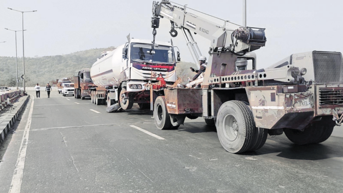 ज्वलनशील प्रोपलेन गॅसने भरलेला टँकर कोचीहून गुजरातच्या दिशेने जात होता. बोरघाटातील अमृतांजन ब्रीजजवळ आला असता ब्रेक निकामे झाल्याचे चालकाच्या लक्षात आले. त्याने अक्षरशः ब्रेकवर उभे राहून गाडी थांबवण्याचा प्रयत्न केला. मात्र त्याला यश आले नाही. अखेर चालकाने अत्यंत सतर्कतेने व कौशल्याने टँकर रस्त्याच्या कडेला असलेल्या कठड्यापर्यंत कसाबसा नेला. टँकरने कठड्याला धडक दिली आणि तो जागीच थांबला. अपघाताची माहिती मिळताच बोरघाट महामार्ग वाहतूक पोलीस, खोपोली पोलीस, आयआरबी पेट्रोलिंग, डेल्टा फोर्स, देवदूत यंत्रणा आणि हेल्प फाऊंडेशनच्या कर्मचाऱ्यांनी घटनास्थळी धाव घेतली. सुरक्षेच्या दुष्टीने मुंबईकडे जाणारी वाहतूक काही काळ बंद करण्यात आली होती.