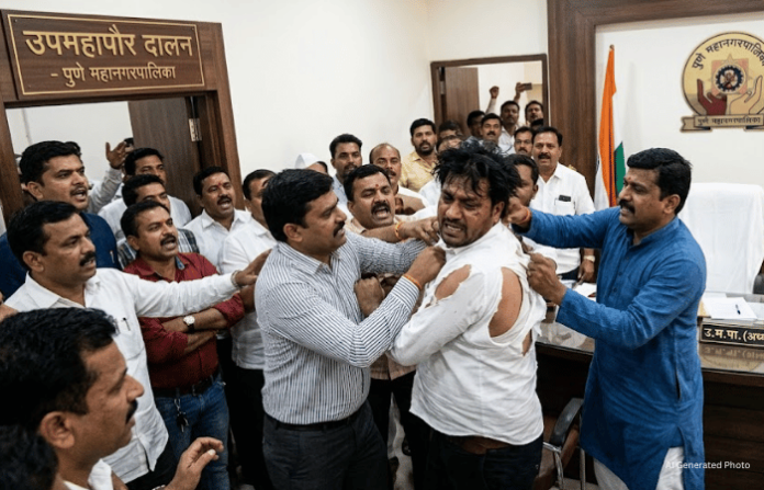 पुण्यात उपमहापौरांच्या दालनात राडा; खुर्च्या फेकल्या, शर्ट फाडले!