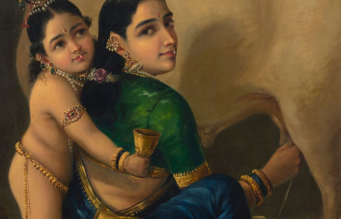 या कलाकृतीमध्ये मातृप्रेमाचा एक अत्यंत हळवा आणि पवित्र क्षण टिपण्यात आला आहे. भगवान श्रीकृष्ण आणि त्यांची माता यशोदा यांच्यातील जिव्हाळा या चित्राचा केंद्रबिंदू आहे. यशोदा माता गायीचे दूध काढत असताना बाळ कृष्ण मागून दुधाचा पेला घेण्यासाठी आपला हात पुढे करत आहेत, असे दृश्य यात अत्यंत बारकाव्याने रंगवण्यात आले आहे. एक सामान्य क्षण असूनही त्यात असणारी भावनिक खोली यामुळे हे चित्र राजा रविवर्मा यांच्या सर्वात महत्त्वाच्या रचनांपैकी एक मानले जाते.