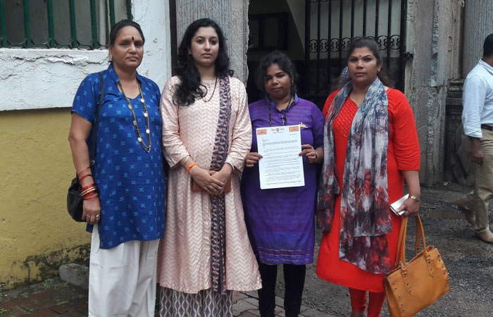 shivsena deputy president of goa rakhi-prabhudesai-naik along with party workers in front of panaji police station