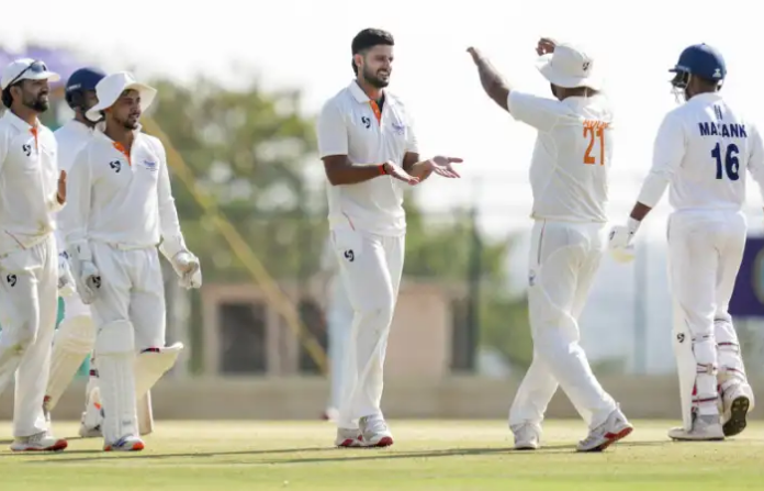 पहिल्या डावात 584 धावांचा डोंगर उभारल्यानंतर कश्मीरने चेंडू हातात घेताच कर्नाटकची कोंडी केली. नबीने 14 षटकांत केवळ 32 धावा देत तीन विकेट टिपले आणि सामन्याचा सूरच पालटवला. सलग नऊ षटके टाकत त्याने प्रतिस्पर्ध्यांच्या छातीत धडकी भरवली. या भेदक माऱयानंतर कर्नाटकचे 11 वर्षांनतर रणजी जिंकण्याचे स्वप्न दूरवर फेकले गेले.