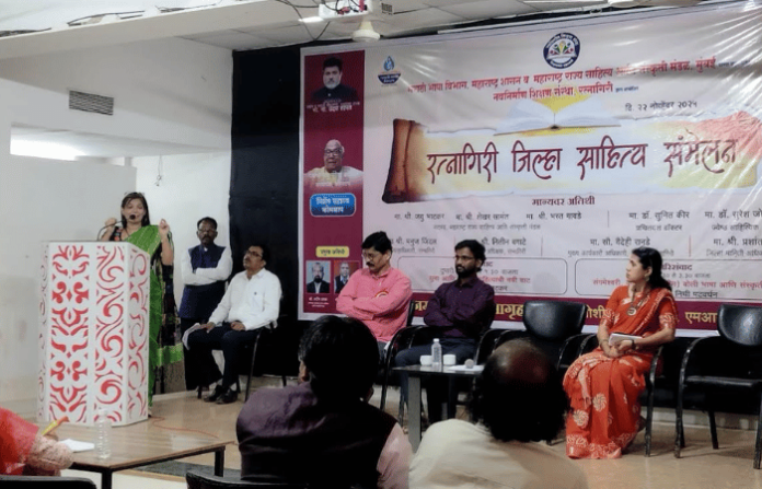महाराष्ट्र शासनाचा मराठी भाषा विभाग, महाराष्ट्र राज्य साहित्य आणि संस्कृती मंडळ (मुंबई) यांच्या अनुदानातून आणि नवनिर्माण शिक्षण संस्थेतर्फे रत्नागिरी जिल्हा साहित्य संमेलन घेण्यात आले. यात दुपारच्या सत्रात आयोजित केलेल्या या परिसंवादात भाषा अभ्यासक अरुण इंगवले, संगमेश्वरी बोलीचे अभ्यासक आणि पत्रकार अमोल पालये, गोवा येथील बोलीभाषा अभ्यासक प्रा. सारिका अडविलकर सहभाग घेतला. या परिसंवादाचे अध्यक्षस्थान मराठी, बोलीभाषा अभ्यासक प्रा. डॉ. निधी पटवर्धन यांनी भूषविले.