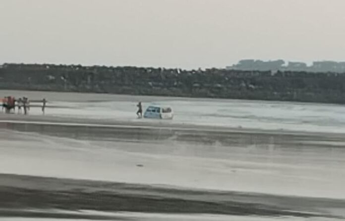 पर्यटकांनी समुद्र किनाऱ्यावर जाताना आपली चार चाकी वाहने ही आपल्या सुरक्षिततेसाठी समुद्र किनाऱ्यावर घेऊन जावू नये असे पर्यटक व्यवसायिकांकडून नेहमीच आणि सातत्याने सांगितले जाते. तरी सुद्धा काही पर्यटक हे स्थानिकांनी सांगितलेल्या सुचनांकडे दुर्लक्ष करतात. आंजर्ले येथे वास्तव्याला असणारे काही जण आज (05 नोव्हेंबर 2025) संध्याकाळी समुद्र किनाऱ्यावर मौजमजा करण्यासाठी आले होते. पौर्णिमा असल्यामुळे पाण्याला नेहमी पेक्षा अधिक भरती होती. त्यामुळे समुद्राच्या पाण्याने किनारपट्टी व्यापली होती. अशी परिस्थिती असतानाही त्यांनी कार पाण्यात घातली आणि कार पुळणीच्या पाण्यात रुतली. भरतीचे पाणी वाढत गेले आणि कार पाण्यात बुडाली.