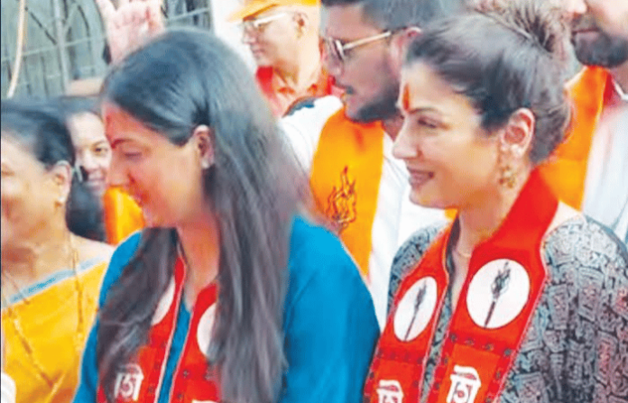 महापालिका निवडणुकीच्या रणधुमाळीत दिग्गज स्टार प्रचारक आपापल्या पक्षाच्या उमेदवारांचा प्रचार करताना दिसत आहेत. मराठी सिनेसृष्टीतील कलाकारदेखील प्रचार करताना दिसले. आता बॉलीवूडमध्ये एक काळ गाजवणारी अभिनेत्री रवीना टंडन हीदेखील महापालिका निवडणुकीच्या प्रचारात उतरली आहे. तिने शिवसेनेचे निवडणूक चिन्ह मशाल हाती घेऊन प्रचार केला. रवीना टंडन गल्लोगल्ली जाऊन मतदारांच्या दारात उभी राहून मशालीसाठी मत मागत आहे. याचा व्हिडीओ सोशल मीडियावर व्हायरल झाला आहे.