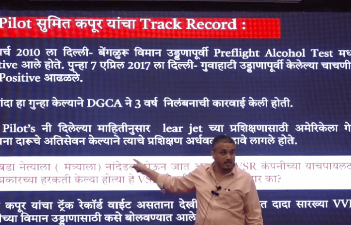 रोहित पवार यांनी व्हीएसआर कंपनीच्या एका ग्रुपमधील काही संदेशांचा उल्लेख केला. त्यानुसार, एका संदेशात “एक महत्त्वाचे उड्डाण रद्द करावे लागले, कारण पायलट खूप मद्यधुंद होता,” असा उल्लेख असल्याचे त्यांनी सांगितले.