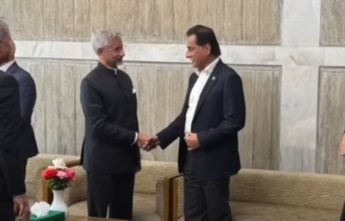 परराष्ट्र मंत्री एस. जयशंकर यांचा एक व्हिडीओ सध्या सोशल मीडियावर व्हायरल होताना दिसत आहे. या व्हिडीओत ते पाकिस्तानी संसदेचे अध्यक्ष सरदार अयाज सादिक यांच्याशी हस्तांदोलन करताना दिसत आहे. ऑपरेशन सिंदूरनंतर हिंदुस्थान आणि पाकिस्तानच्या वरिष्ठ नेत्यांची ही पहिलीच भेट असल्याचं म्हटलं जात आहे.
