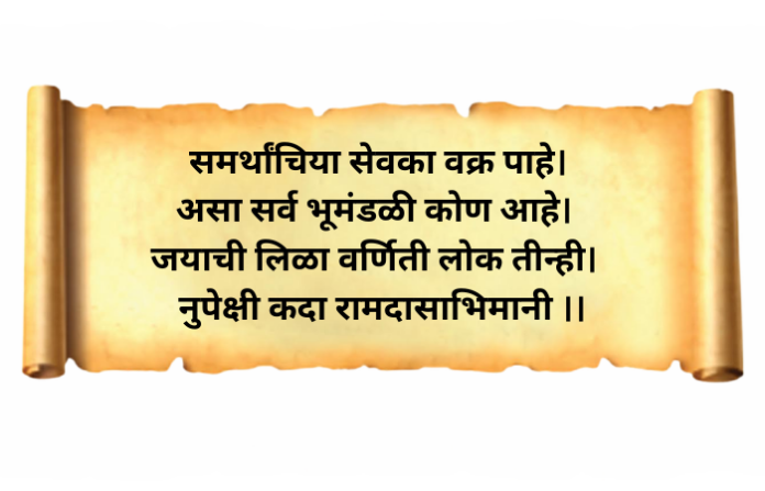 मराठी भाषकांच्या ध्यानीमनी असलेला हा लोकप्रिय श्लोक महत्त्वाचा आहे. श्रीराम हा महाप्रतापी असल्याने तुमच्याकडे कोणी वाकडय़ा नजरेने पाहणार नाही, असे आश्वासन या श्लोकात दिले आहे. लोकांच्या धैर्याला आत्मविश्वासाला बळकट केले आहे. रामाच्या भक्ताकडे कोणीही कपटी नजरेने पाहू शकणार नाही, असा धीर आत्मबल वाढवणारा आहे. शिवरायांच्या हिंदवी स्वराज्यात लोकांना धैर्य निर्माण करण्याची ताकद या शब्दात होती. वाल्मिकी रामायणातील ‘श्रीराम हा क्षात्रधर्माचा अवतार आहे’ हे रामाचे रुप रामदासांना लोकांच्या प्रत्ययास आणून द्यायचे होते. कारण सभोवताली चाललेली स्त्रियांची विटंबना ते पाहत होते. अत्याचार अपमानाचा व अन्यायाने कळस गाठला होता. रामदासांसारख्या विरक्त साधूंची मनेही दुखावल्याने संतप्त झाली होती. ‘दया क्षमा शांती, तेथे देवाची वसती’- असे म्हणणारे समकाळातले ‘संत तुकाराम’ हे नाठाळांना सजा देण्याचे आवाहन कसे करतात ते पाहू. ते म्हणतात- ‘भले तरी देऊ कासेची लंगोटी। नाठाळाचे माथा हाणु काठी। मायबापांहूनी आम्ही मायवंत। करू घात पाते शत्रू हूनी। अमृत ते काय गोड आम्हा पुढे। विष ते बापुडे कडू किती।’ धर्मरक्षणासाठी एक होण्याचा, लढण्याचे ध्येय बाळगण्याचा आत्मविश्वास आणि मनोबळ वाढवणारा श्लोक म्हणूनच महत्त्वपूर्ण आहे.
