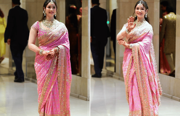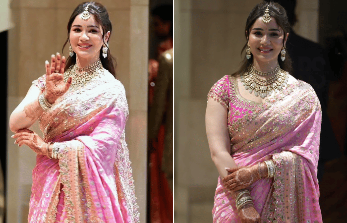 साराने तिच्या भावाच्या लग्नात गुलाबी रंगाची सुंदर साडी नेसली होती. केसांची साधीशी हेअर स्टाईल व गळ्यात राजेशाही हार घातला होता. तिचा हा लूक अनेकांना आवडला आहे.