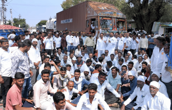बाजार समितीच्या प्रवेशद्वारासमोर शेतकरी व शिवसेना पदाधिकाऱ्यांनी ‘रास्ता रोको’ करत निषेध नोंदविला. गेल्या दोन दिवसांपासून कांदा विक्रीसाठी माल आणून बसलेल्या शेतकऱ्यांना सोमवारी लिलाव सुरू होईल, अशी अपेक्षा होती. मात्र अचानक लिलाव बंद राहणार असल्याची घोषणा होताच शेतकरी आक्रमक झाले.