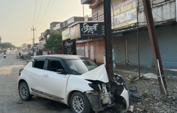 जामखेड-सौताडा राष्ट्रीय महामार्गावर अपघाताची मालिका सुरूच; बीड रोडवर रस्त्यावरील लाईटच्या पोलला गाडी धडकली