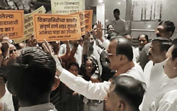 ठाण्यात युतीचा तिढा अद्याप सुटलेला नसताना शिंदे गटाच्या काही माजी नगरसेवकांनी उत्साहाच्या भरात प्रचाराला सुरुवात केली. पुन्हा उमेदवारी मिळेल या आशेवर माजी नगरसेवकांनी प्रभागात प्रचार सुरू केला आहे. प्रभाग क्रमांक १४ मधील लोकमान्यनगर पाडा नंबर १ येथे शिंदेंच्या माजी नगरसेवकांनी रविवारी प्रचार रॅली काढली. मात्र स्थानिक नागरिकांनी रॅली अडवत थेट माजी नगरसेवकांना जाब विचारला. हातात निषेधाचे पोस्टर घेऊन नागरिक रस्त्यावर उतरले असल्याचे पाहून शिंदेंच्या उमेदवारांनी काढता पाय घेतला.