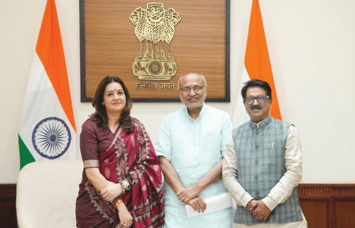 लोकसभेतील शिवसेना गटनेते खासदार अरविंद सावंत व राज्यसभेतील शिवसेना खासदार प्रियंका चतुर्वेदी यांनी आज उपराष्ट्रपती तथा राज्यसभा सभापती सी.पी. राधाकृष्णन यांची भेट घेतली. या भेटीवेळी त्यांनी वंदे मातरम, जय हिंद, धन्यवाद या उद्घोषावरील बंदी तातडीने मागे घेण्याची विनंती केली. खा. चतुर्वेदी यांनी यासंदर्भात राज्यसभा सभापतींना पत्रही लिहिले आहे. या पत्रात त्यांनी या परिपत्रकासंदर्भातील स्थिती सचिवालयाने स्पष्ट करावी, अशी मागणी केली आहे.