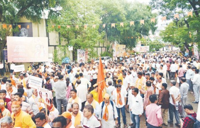 भगवे झेंडे, उपरणी खरेदीसाठी झुंबड