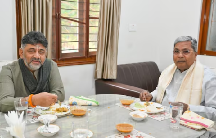 कर्नाटकमध्ये मुख्यमंत्रीबदलावरून मुख्यमंत्री सिद्धरामय्या आणि उपमुख्यमंत्री डी. के. शिवकुमार यांच्यात सुरू असलेल्या ‘शाब्दिक’ शक्ती प्रदर्शनाला तूर्तास पूर्णविराम लागला आहे. सिद्धरामय्या आणि शिवकुमार यांनी आज सकाळी एकत्र नाश्ता केला आणि त्यानंतर एकत्र पत्रकार परिषद घेतली. आमच्यात कोणतेही मतभेद नाहीत, भविष्यातही नसतील. आम्ही एकत्र काम करू, असे त्यांनी स्पष्ट केले.