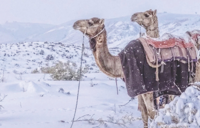 गरम हवा, कडक उन्हाळा आणि विस्तीर्ण वाळवंट अशी ओळख असलेल्या सौदी अरेबियात चक्क बर्फ पडतोय. सौदीच्या अनेक भागांत बर्फवृष्टी, मुसळधार पाऊस आणि घसरते तापमान यामुळे लोक चिंतीत झाले आहेत. क्लायमेट चेंजमुळे ही परिस्थिती उद्भवली आहे. उत्तर सौदीत तबुक प्रांतातील बर्फवृष्टीमुळे पर्वतीय शृंखलेचे रूप पालटले. जेबेल अल लॉजवरील उंच भाग पाऊस आणि बर्फाने झाकला गेला. हा भाग 2600 मीटर उंचीवर आहे. हेल प्रांताच्या आजूबाजूच्या भागातही बर्फ पडला. अनेक शहरांतील तापमान शून्याच्या खाली गेले. नॅशनल सेंटर फॉर मेटरोलॉजीचे प्रवत्ते हुसैन अल कहतानी यांनी सांगितले की, मध्य आणि उत्तरेकडील भागात थंड हवेचा प्रवाह आल्यामुळे व त्याचा पावसाच्या ढगाशी संबंध आल्याने ही स्थिती निर्माण झाली आहे. प्रशासनाने नागरिकांना सावधगिरीने वाहने चालवण्याचा सूचना दिल्या आहेत. खबरदारी म्हणून राजधानी रियाधमधील शाळांना ऑनलाईन शिक्षण घेण्याचे आदेश देण्यात आले आहेत.