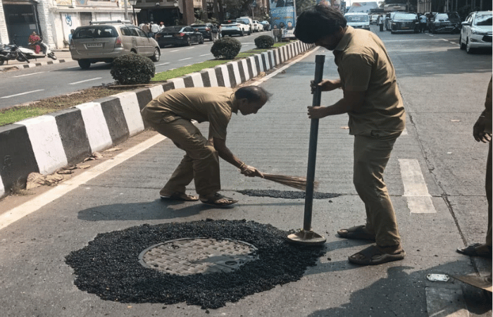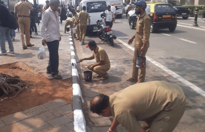 पालिकेने दक्षिण मुंबईतील कुलाबा, ताज हॉटेल या भागातील रस्त्यांवरील खड्डे बुजवले असून ररस्त्यांना रंगरमोगटी करायला सुरुवात केली आहे.