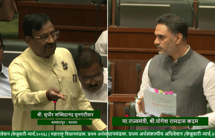 महाराष्ट्राच्या अर्थसंकल्पीय अधिवेशनाच्या दुसऱ्या दिवशी भाजपचे ज्येष्ठे नेते सुधीर मुनगंटीवार यांनी नागरी अन्नपुरवठा विभागाचे राज्यमंत्री योगेश कदम यांची चांगलीच खरडपट्टी काढली. राज्यातील धान उत्पादक शेतकऱ्यांना बोनस देण्याच्या मुद्द्यावरून मुनगंटीवार यांनी योगश कदम यांच्या प्रश्नांची सरबत्ती केली. लक्षवेधीवर बोलताना मंत्र्यांनी अभ्यास करू यायला हवे. चुकीची आकडेवारी देऊ नये. तसेच मुख्यमंत्र्यांशी बोलतो, बैठक लावतो, चर्चा करतो, मंथन करतो हे चालत नाही. मी काय तुम्हाला उखाणे घ्यायला सांगतोय का? अशा शब्दात मुनगंटीवार यांनी योगेश कदम यांना सुनावले.