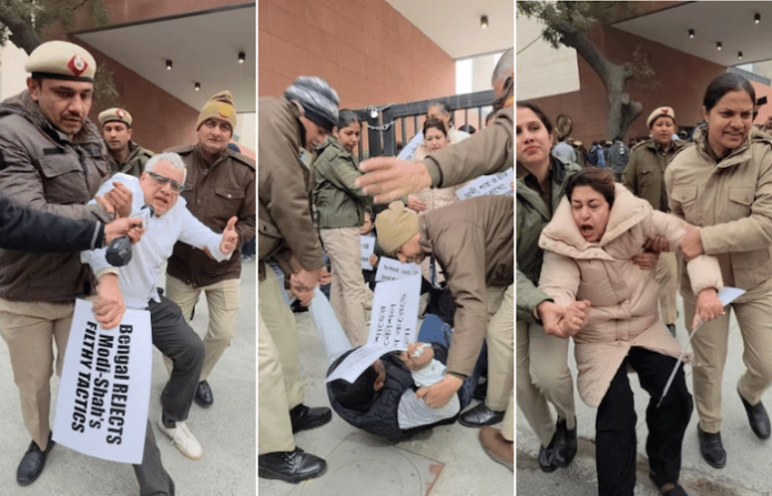 पश्चिम बंगालमध्ये विधानसभा निवडणुकीच्या तोंडावर राजकीय सल्लागार कंपनी आयपीएसीचे कार्यालय तसेच कंपनीचे संचालक प्रतीक जैन यांच्या निवासस्थानावर गुरुवारी ईडीने धाड टाकली. ‘आयपीएसी’कडे तृणमूल काँग्रेसच्या आयटी सेलचीही जबाबदारी आहे. या धाडीचे पडसाद शुक्रवारी राजधानी दिल्लीत उमटले. ईडीच्या कारवाईविरोधात खासदार डेरेक ओ ब्रायन आणि महुआ मोईत्रा यांच्या नेतृत्वात तृणमूल काँग्रेसच्या खासदारांनी गृहमंत्रालयाच्या कार्यालयाबाहेर आंदोलन केले. यावेळी पोलिसांनी सर्व खासदारांना ताब्यात घेतले आणि अक्षरश: फरफटत पोलीस स्थानकात नेले.