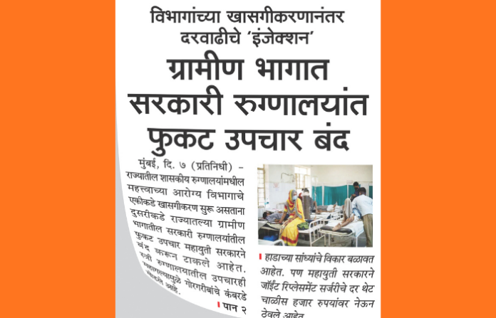 राज्यातल्या ग्रामीण भागातील शासकीय रुग्णालयांत वैद्यकीय उपचार मोफत आहेत; पण मोफत उपचार बंद करण्यासाठी राज्याच्या आरोग्य विभागाने सुधारित व अद्ययावत ‘नागरिकांची सनद’ प्रसिद्ध केली होती. यामध्ये वैद्यकीय उपचारांचे दर वाढल्याचे नमूद केले होते. यासंदर्भात ‘ग्रामीण भागात सरकारी रुग्णालयात फुकट उपचार बंद’ हे वृत्त दैनिक ‘सामना’मध्ये 8 फेब्रुवारी रोजी प्रसिद्ध झाले होते. हे वृत्त प्रसिद्ध होताच राज्यातील गोरगरीब, गरजू रुग्णांमध्ये संतापाची लाट उसळली होती. सार्वजनिक आरोग्य विभागाने या वृत्ताची तातडीने दखल घेतली. सार्वजनिक आरोग्य विभागाच्या नियंत्रणाखालील शासकीय रुग्णालयातील तपासणी व उपचार हे 23 जानेवारी 2023च्या शासन निर्णयाप्रमाणे निःशुल्क करण्यात आलेले असून ते आजही पूर्वीप्रमाणेच निःशुल्क आहेत, असे सरकारकडून स्पष्ट करण्यात आले.