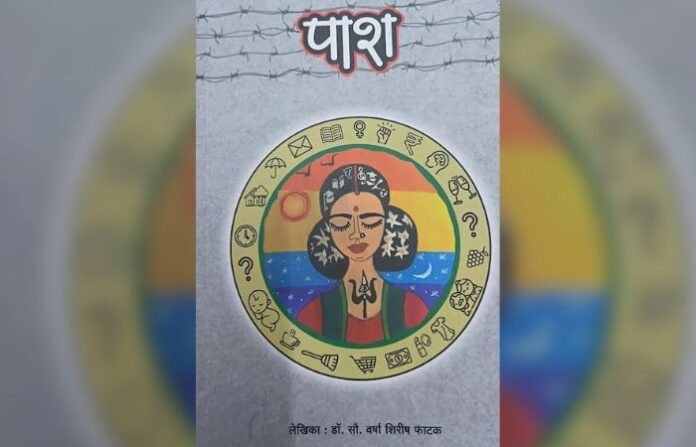 इरा फाटक यांनी साकारलेलं मुखपृष्ठ केवळ पुस्तकाचं नव्हे, तर संपूर्ण स्त्री जगण्याचं दृश्य प्रतीक बनतं. डोळे मिटलेल्या अंतर्मुख स्त्री भोवती फिरणारं वर्तुळ दिवस-रात्र, जबाबदाऱ्या, शिक्षण, कला, पैसा यांचं प्रतीक आहे. तिच्या गळ्यातलं त्रिशूल तिच्या त्रिगुणी ऊर्जेचं, सामर्थ्याचं द्योतक आहे. वर्तुळाबाहेरील ‘पाश’ ही धवल अक्षरे काळ्या पार्श्वभूमीवर लाल सीमारेषांसह तिच्या संघर्षातून उमटलेल्या विजयाची खूण वाटतात.