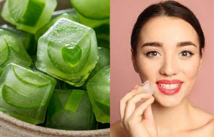 साध्या पाण्याऐवजी कोरफड जेलचे तुकडे सुद्धा आपण तयार करू शकतो. कोरफड जेलचे बर्फ बनवण्यासाठी ठेवताना, त्यात काही थेंब लिंबाचा रस घालता येईल. या बर्फाच्या क्यूबने चेहऱ्यावर मालिश केल्याने, त्वचा हायड्रेट होण्यास मदत मिळते. तसेच आपल्या त्वचेवरील डागही कमी होतात. त्वचेवरील पुरळ आणि त्वचेची जळजळ कमी करण्यास देखील हे आइस क्यूब खूप उपयुक्त आहेत.