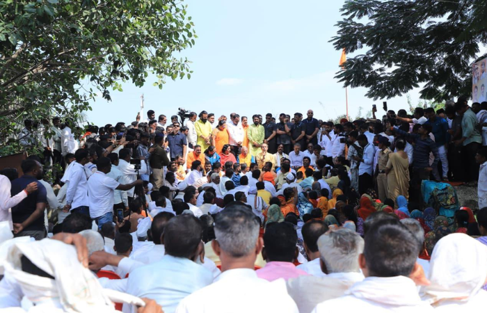 शिवसेना (उद्धव बाळासाहेब ठाकरे) पक्षप्रमुख उद्धव ठाकरे यांचा मराठवाड्यातील शेतकरी बांधवांसोबतचा संवाद दौऱ्याचा आज दुसरा दिवस आहे. आज धाराशिव जिल्ह्यातील करजखेडा येथील शेतकरी बांधवांसोबत त्यांनी संवाद साधला. इथल्या शेतकरी बांधवांनी त्यांच्या समस्या उद्धव ठाकरेंसमोर मांडल्या. संकट कितीही गंभीर असलं तरी आपण खचायचं नाही, हा विश्वास उद्धव ठाकरे यांनी बळीराजाला दिला. यावेळी शिवसेना नेते चंद्रकांत खैरे, शिवसेना नेते अंबादास दानवे, शिवसेना सचिव आमदार मिलिंद नार्वेकर, शिवसेना खासदार ओमराजे निंबाळकर, शिवसेना आमदार जिल्हाप्रमुख कैलास पाटील आणि इतर पदाधिकारी उपस्थित होते.