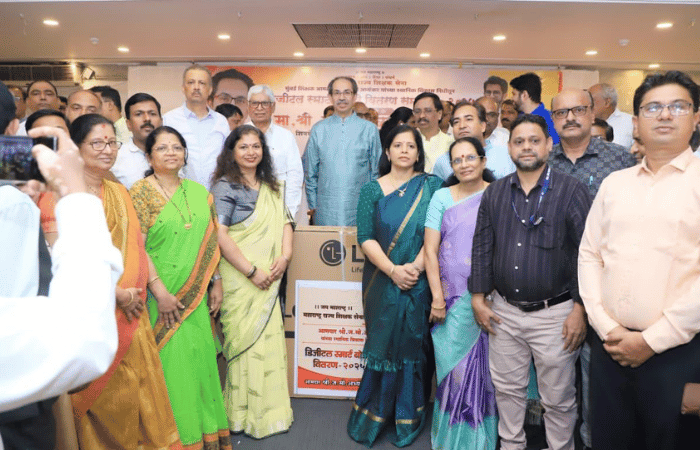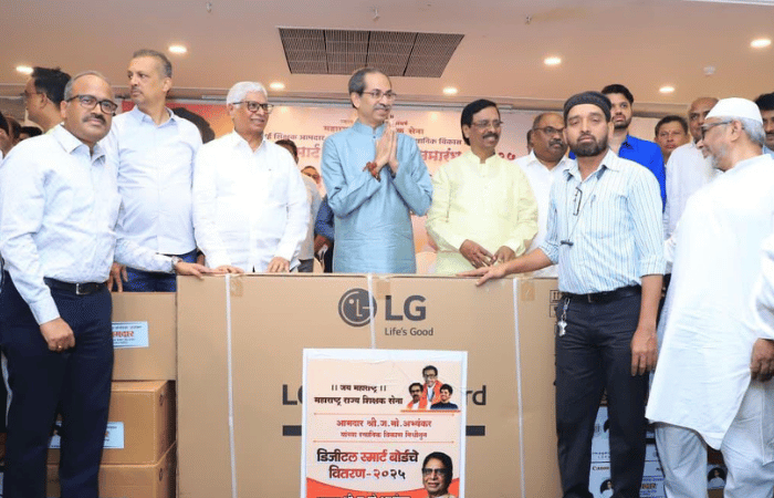 मुंबई शिक्षक आमदार ज. मो. अभ्यंकर यांच्या स्थानिक विकासनिधीतून आज एम. आय. जी. क्लब, वांद्रे पूर्व येथे मुंबईतील विविध शाळांकरिता ‘डिजीटल स्मार्ट बोर्ड’ वितरण शिवसेना (उद्धव बाळासाहेब ठाकरे) पक्षप्रमुख उद्धव ठाकरे यांच्या हस्ते करण्यात आले. यावेळी शिवसेना नेते सचिव विनायक राऊत, शिवसेना नेते आमदार ॲड. अनिल परब, शिवसेना-युवासेना सचिव आमदार वरुण सरदेसाई, शिवसेना सचिव आमदार मिलिंद नार्वेकर तसेच शिवसेना आणि शिक्षक सेनेचे पदाधिकारी उपस्थित होते.