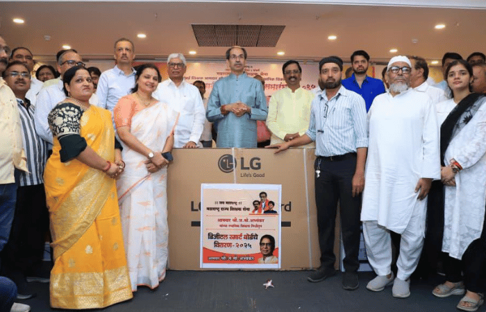 मुंबई शिक्षक आमदार ज. मो. अभ्यंकर यांच्या स्थानिक विकासनिधीतून आज एम. आय. जी. क्लब, वांद्रे पूर्व येथे मुंबईतील विविध शाळांकरिता ‘डिजीटल स्मार्ट बोर्ड’ वितरण शिवसेना (उद्धव बाळासाहेब ठाकरे) पक्षप्रमुख उद्धव ठाकरे यांच्या हस्ते करण्यात आले. यावेळी शिवसेना नेते सचिव विनायक राऊत, शिवसेना नेते आमदार ॲड. अनिल परब, शिवसेना-युवासेना सचिव आमदार वरुण सरदेसाई, शिवसेना सचिव आमदार मिलिंद नार्वेकर तसेच शिवसेना आणि शिक्षक सेनेचे पदाधिकारी उपस्थित होते.