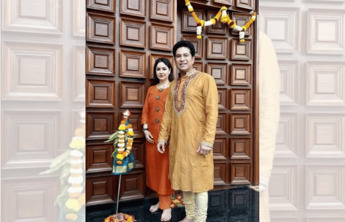 सचिन तेंडुलकरने नुकताच सोशल मीडियावर एक व्हिडीओ शेअर केला. या व्हिडीओंतर्गत त्याने आणि त्याची पत्नी अंजली या दोघांनीही गुढी उभारत आईचे आशीर्वाद घेतले. हिंदू नववर्षातील हा सण या दोघांनीही मराठमोळ्या अंदाजात साजरा केला. पारंपारिक वेशभुषा आणि मायबोलीमध्ये मास्टर ब्लास्टरने चाहत्यांना शुभेच्छा दिल्या. क्रिकेटच्या या देवाने आईचे सपत्नीक केलेले चरणस्पर्श सध्या कौतुकाचा विषय ठरत आहे. सचिनने या व्हिडीओच्या माध्मातून आपले संस्कार जपले आहेत ही खरोखरीच वाखाणण्याजोगी बाब आहे. “तुम्हाला व कुटुबियांना गुढीपाडवा व मराठी नववर्षाच्या हार्दिक शुभेच्छा…हे नववर्ष, आनंद, सुख, समृध्दीचे जावो, हीच प्रार्थना.” अशा मराठीतील कॅप्शनसह सचिनने आपल्या चाहत्यांना गुढीपाडव्याच्या शुभेच्छा दिल्या आहेत.